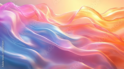 Colorful flowing fabric waves creating a serene atmosphere with soft gradients in a dreamy landscape