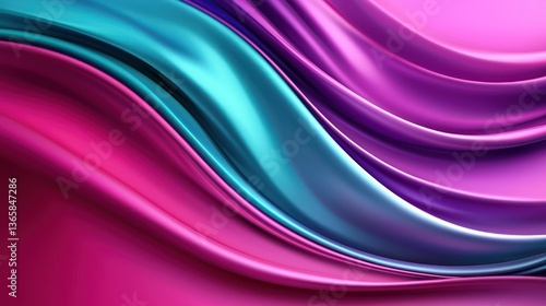 Colorful flowing fabric waves in vibrant shades of pink, blue, and purple creating a dynamic backdrop