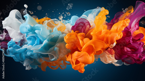 Colorful Flowing Fluid Paint on Blue Black Background, Abstract Image, Texture, Pattern Background, Wallpaper, Cover and Screen of Smartphone, Cell Phone, Computer, Laptop, 9:16 and 16:9 Format