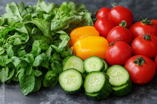 Colorful fresh vegetables arranged on a dark background, highlighting the concept of healthy eating and providing essential nutrients