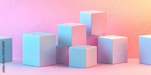 Colorful geometric blocks arranged on a soft gradient background, ideal for modern art and design projects.