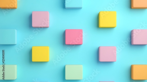 Colorful geometric blocks arranged on a vibrant turquoise background for creative and playful design projects