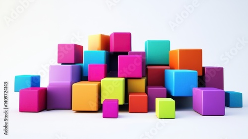 Colorful geometric blocks stacked in vibrant arrangement on white background