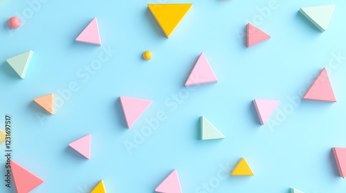 Colorful Geometric Shapes in Different Sizes and Arrangements on a Light Blue Background