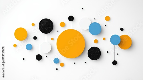 Colorful Geometric Shapes on White Background with Circles and Dots in Bright Colors