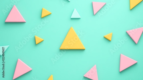 Colorful Geometric Shapes Pattern on Mint Green Background for Modern Design and Creative Projects