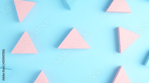 Colorful geometric shapes scattered on a bright blue background creating a modern abstract composition