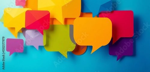 Colorful geometric speech bubbles overlapping, abstract communication concept, colorful shapes, design