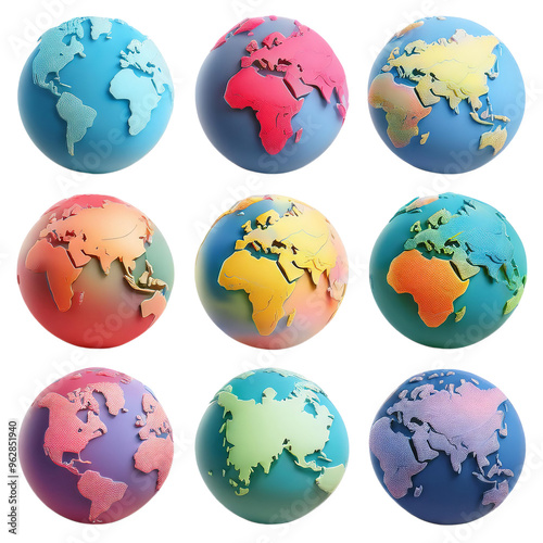 Colorful globe showing continents in abstract 3D rendering isolated on transparent background