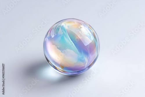Colorful Glossy Sphere with Soft Rainbow Hues on Plain Background