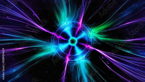 Colorful, glowing, and swirling space with a blue circle in the middle