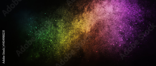 Colorful gradient background with vibrant hues of green, yellow, orange, pink, and purple, creating mesmerizing visual effect against black backdrop. This artistic design evokes sense of wonder