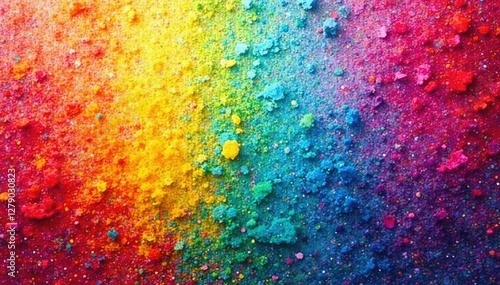 Colorful gradient morphs into textured canvas with scattered stains, scattered stains, messy