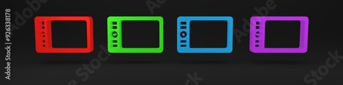 Colorful Graphic tablet icon isolated on black background. Minimalism concept. 3D render illustration