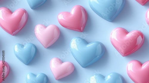Colorful heart shapes in pastel shades create a playful and cheerful background design for celebrations and events