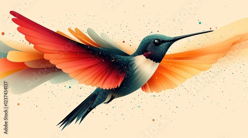 Colorful Hummingbird in Flight, Abstract Background, Nature Art