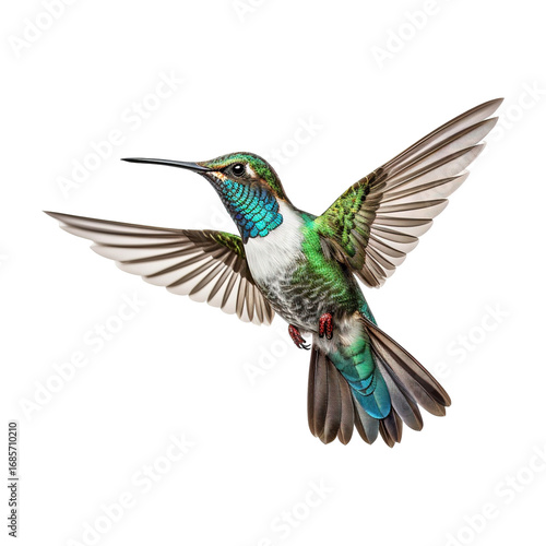 Colorful Hummingbird in flight isolated on a transparent white background, clipping path