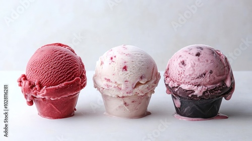 Colorful Ice Cream Scoops Melting on a White Background Generative AI