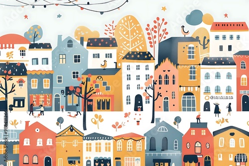 Colorful Illustration Of A Town In Autumn