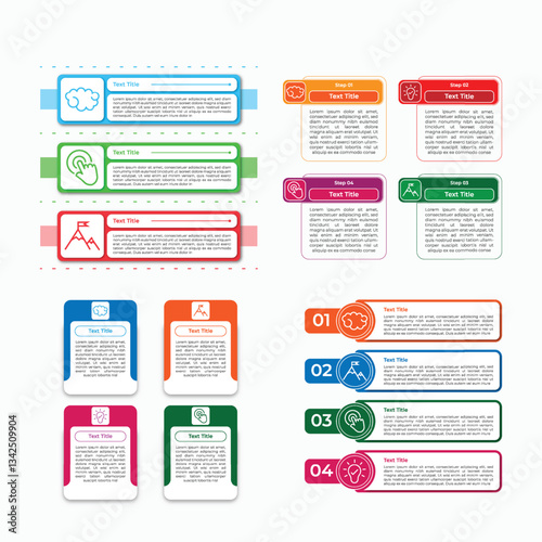 colorful info graphic design with with service options, steps, parts, and processes, statistics corporate report, business model Collection, presentation for leaflet template layout.