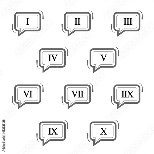 Colorful info-graphic roman numbers can be use to create presentation. Bullet points roman numbers one to ten. Oval shape vector numbers.
