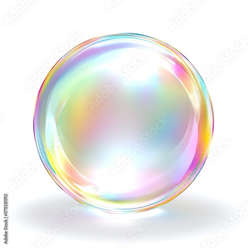 Colorful iridescent sphere, resembling a soap bubble, against a white background