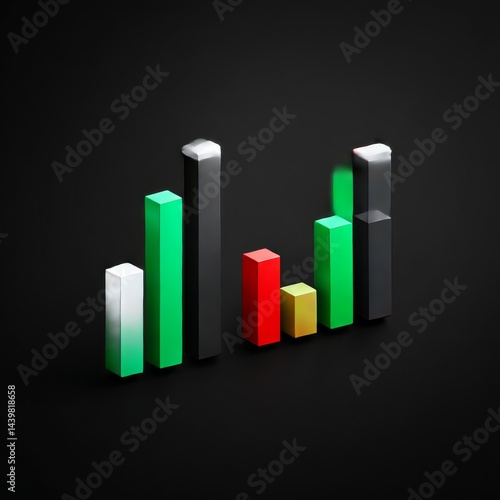 Colorful Isometric Bar Graph on Dark Background Illustrating Data Analysis and Market Trends