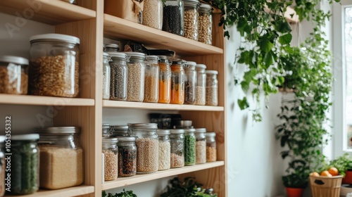 Colorful jars of pickled vegetables displayed with fresh produce like tomatoes, peppers, and cucumbers on a rustic wooden surface. Concept: preserving, harvest.