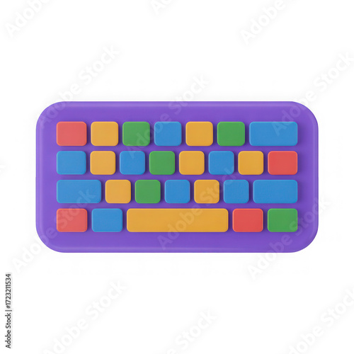 Colorful Keyboard with Keys in Modern Rounded Design 3d icon in cartoon plastic style minimal isolated on transparent white background, clipping path