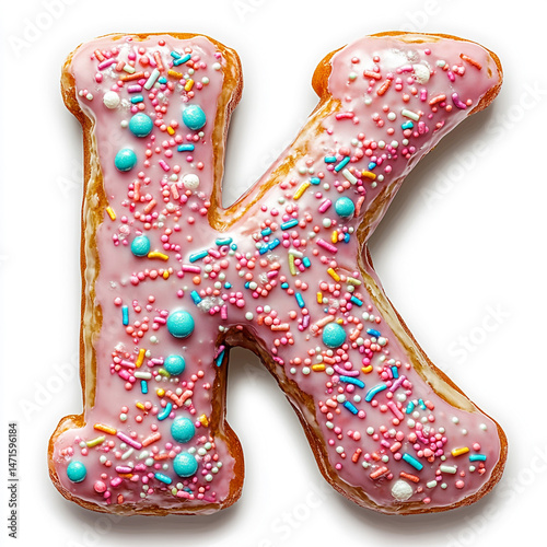 Colorful letter K donut with sprinkles and icing