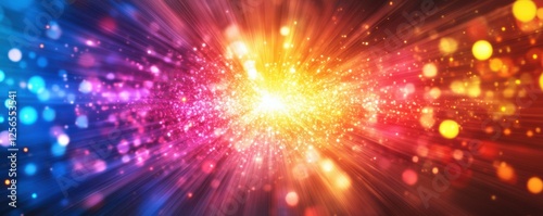 Colorful light burst with sparkling bokeh effect in radiant spectrum