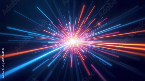Colorful light bursts radiate from a central point in a vibrant digital representation of energy