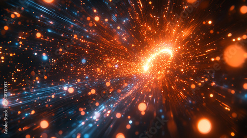 Colorful light trails creating a sense of motion in a cosmic space environment
