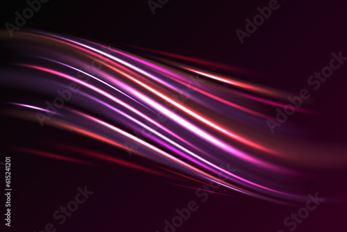 Colorful light trails with motion effect. Neon color glowing lines background, high-speed light trails effect.