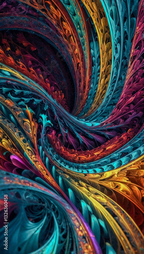 Colorful linear fractal design for posters and illustrations.