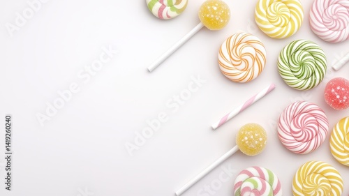 Colorful lollipop pile in a clean layout with pastel colors, ideal for candy-themed designs and marketing materials.