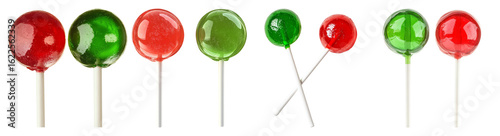 Colorful Lollipops in Red and Green on White Background, PNG bundle collection, Isolated on Transparent Background