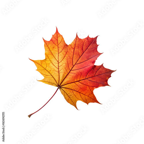 Colorful maple leaf isolated on transparent background, symbolizing the autumn season and the beauty of natures changes