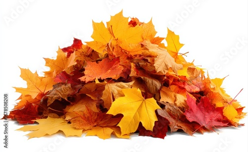 Colorful maple leaves creating a vibrant pile, representing the beauty of autumn and the transition of the seasons in nature
