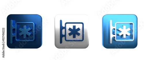 Colorful Medical symbol of the Emergency - Star of Life icon isolated on white background. Square button. 3D render illustration