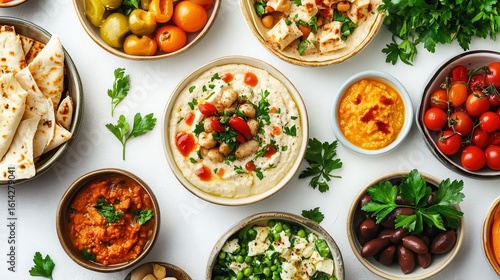 Colorful Mediterranean Dip Platter with Fresh Ingredients and Textures