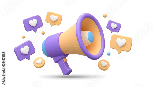 Colorful Megaphone Heart icon 3D