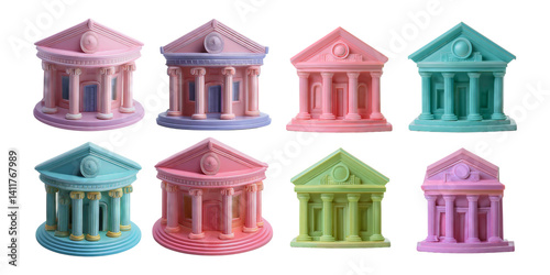 Colorful Miniature Buildings in Various Shapes and Designs, isolated on transparent background