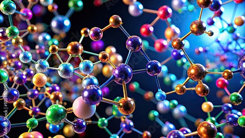 Colorful Molecular Structures on Black Background | 3D Rendered Educational Illustration of Chemical Compounds and Atomic Models with Bokeh Effect for Scientific Study and Research Purposes