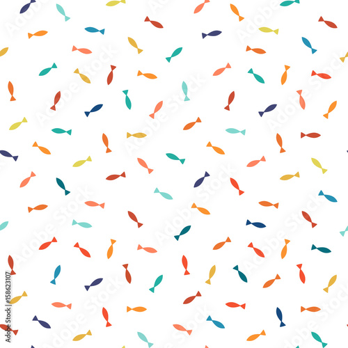 Colorful mosaic seamless pattern with minimalistic fishes icons.