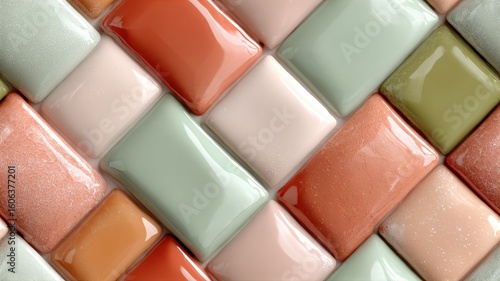 Colorful Mosaic Tile Patterns in Soft Pastel Shades and Glossy Finish