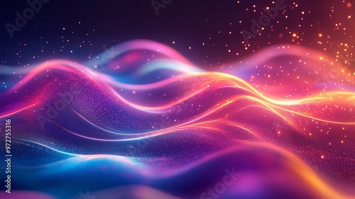 Colorful motion elements with neon led illumination waves. Abstract futuristic background.