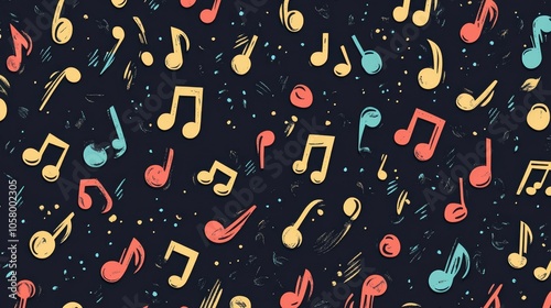 Colorful Musical Notes Pattern on Dark Background