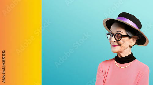 Colorful Nanny Portrait banner with empty space on the side for text. Generative AI