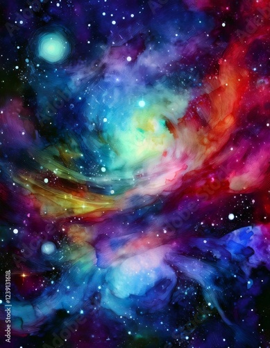 Colorful nebula and stars swirling in the vast universe